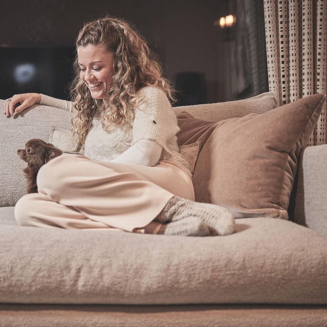 Block-sohva yhdistää muhkean mukavuuden ja modernin, pyöreälinjaisen muotokielen.
