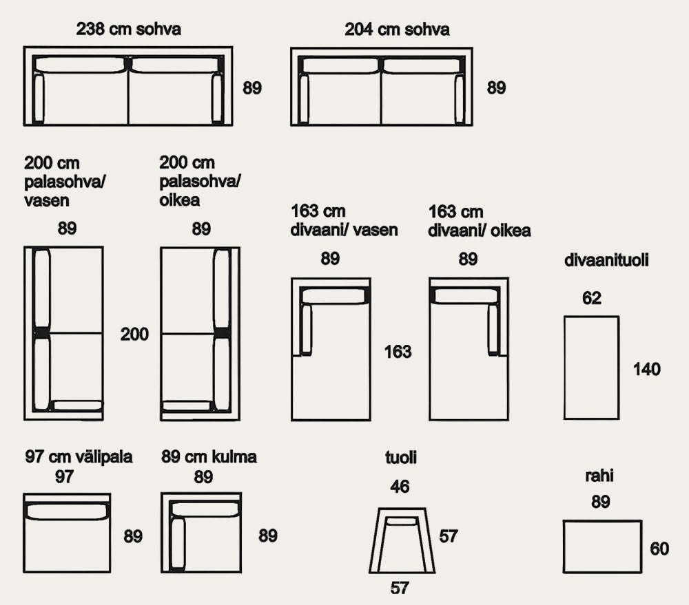 Air-sohva on kevyt ja ilmava kotimainen sohva. Ajaton muotoilu, hyvä istuinmukavuus ja irrotettava verhoilu. Saatavilla useissa mitoissa ja kankaissa.