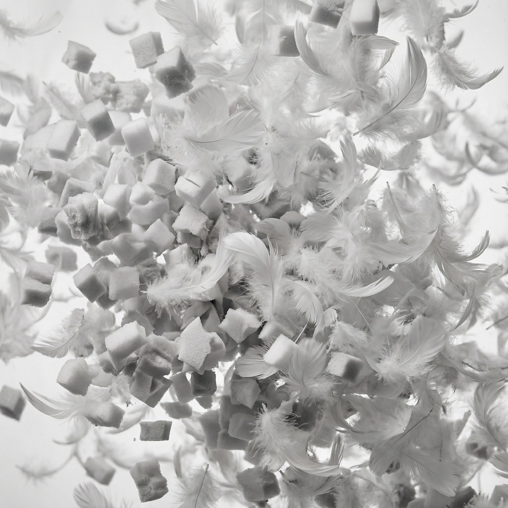 Tyynyjen täyte on höyhen- ja vaahtomuovirouheen sekoitetta – tuttavallisemmin höyhenrouhetta. Käyttämämme höyhen on sertifioitua. Vaahtomuovirouhe syntyy vaahtomuovituotannon leikkausylijäämästä, joka rouhitaan pienemmäksi. Näin minimoidaan tuotannon hukkaa ja hyödynnetään materiaali tehokkaasti.