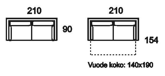 Istuin-, selkä- sekä käsinojatyynyt höyhen+vaahtomuovispagetti täytteiset. Istuintyynyssä ydin vaahtomuovi HR35.