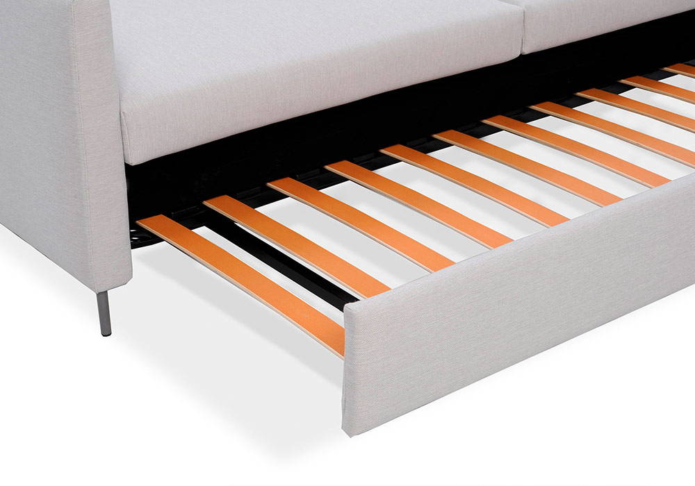 Kokonaan irrotettava verhoilu, sekä rungosta että tyynyistä.