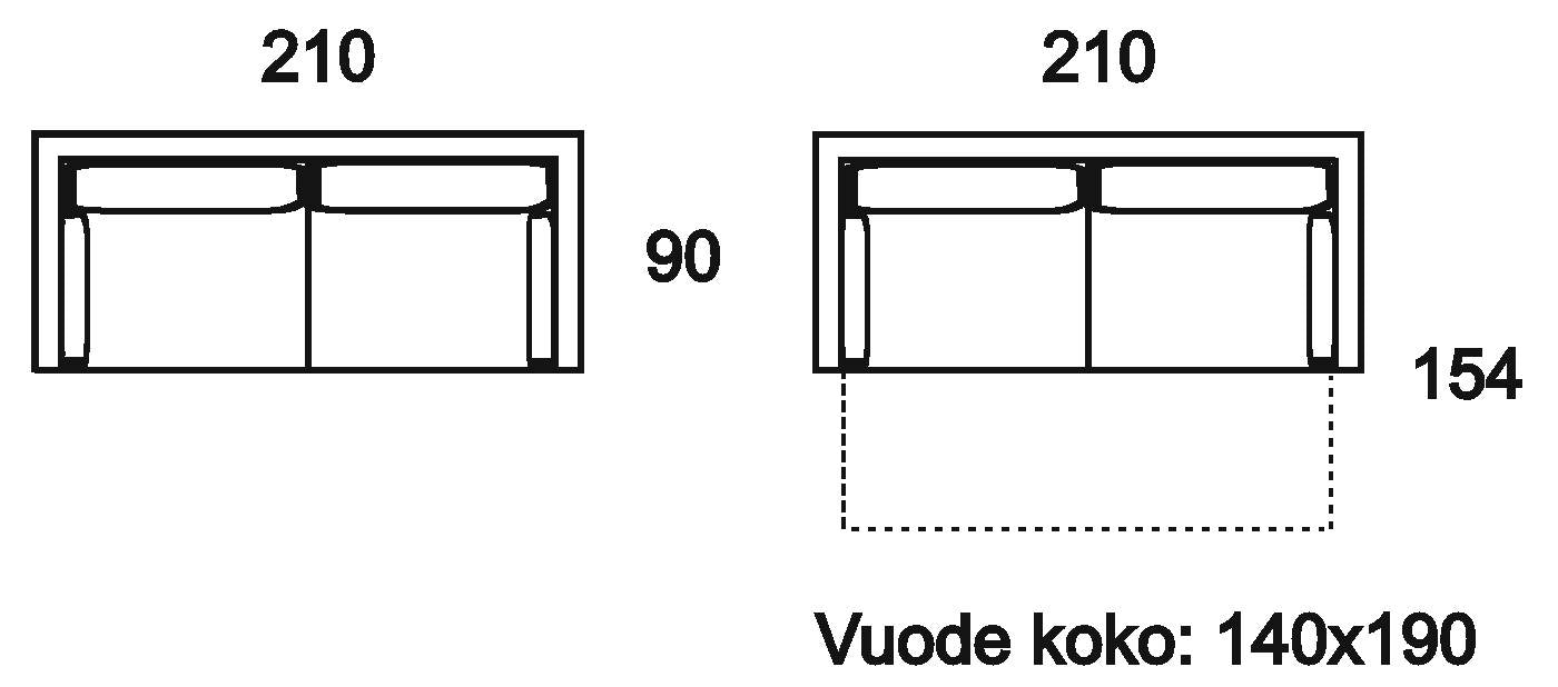 Istuin-, selkä- sekä käsinojatyynyt höyhen+vaahtomuovispagetti täytteiset. Istuintyynyssä ydin vaahtomuovi HR35.